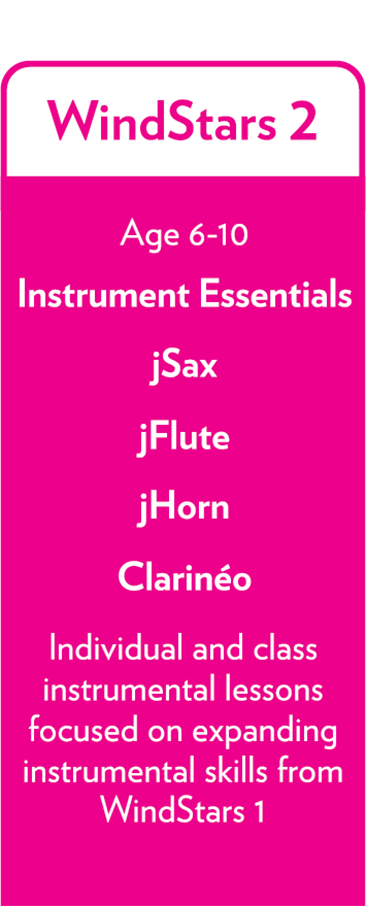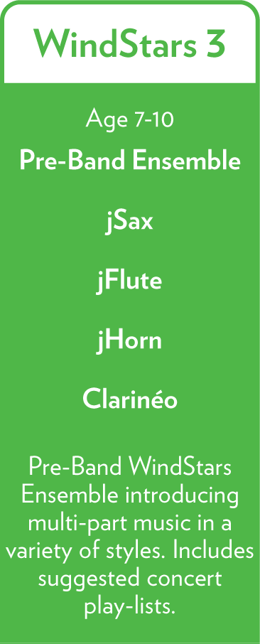 WindStars ist eine einfache, effektive und kostengünstige Möglichkeit für Grund- und Mittelschulkinder, die Freude am gemeinsamen Musizieren zu erleben. Durch WindStars lernen Kinder schon früh ein Musikinstrument zu spielen und entwickeln eine lebenslange Liebe zur Musik.